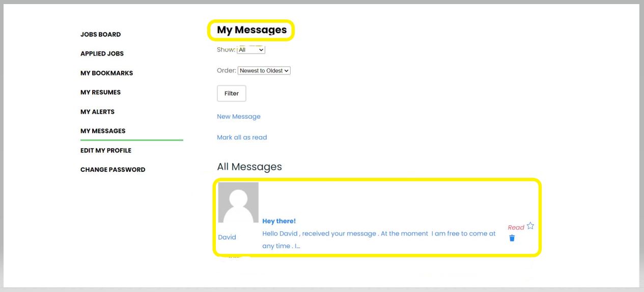 Once you click My Messages in the menu, you will be redirected to a page displaying all your messages. On this page, all messages that you have received and sent will be visible under the All Messages heading.